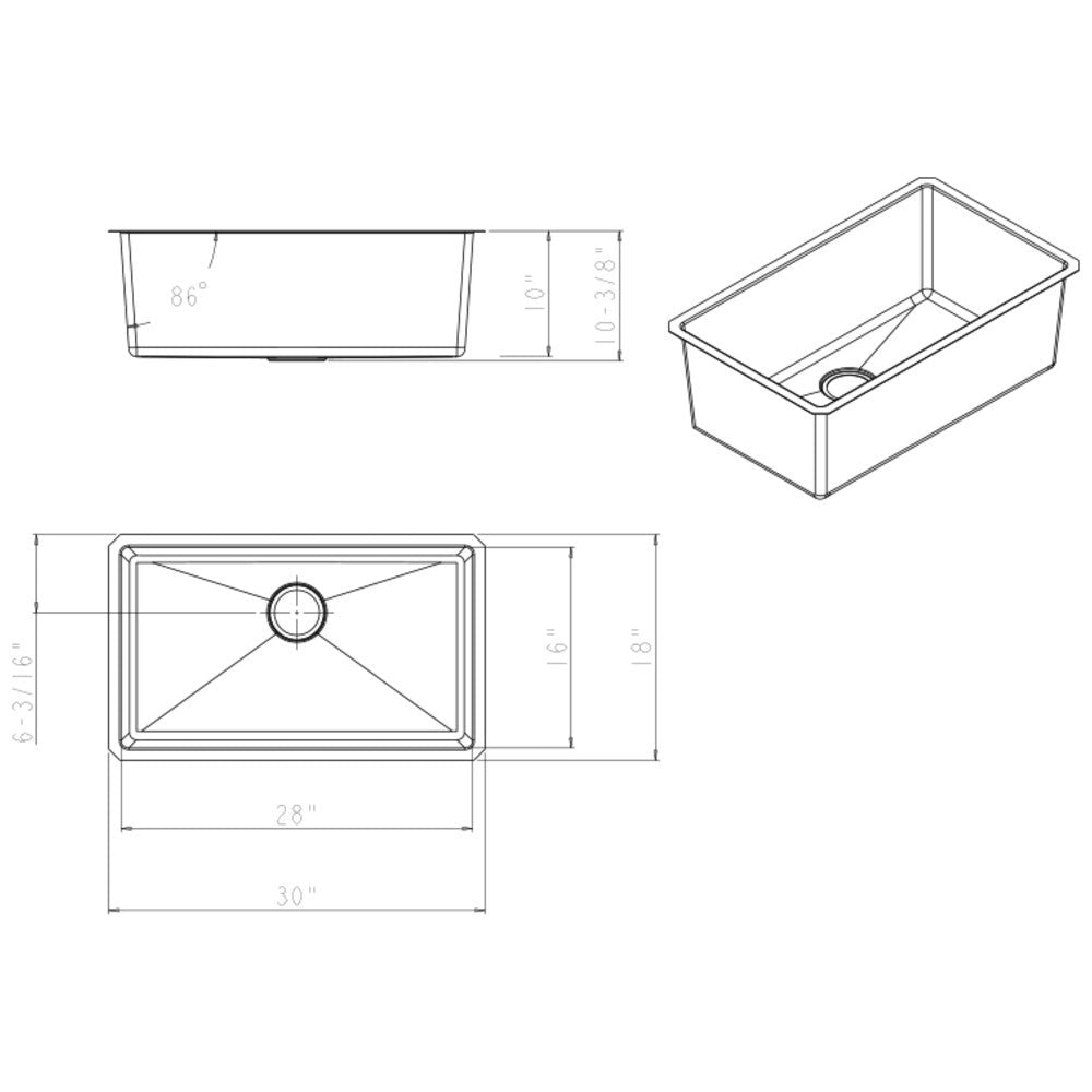 30" L x 18" D x 10" H Undermount 16 Gauge Handmade Stainless Steel Single Bowl Sink