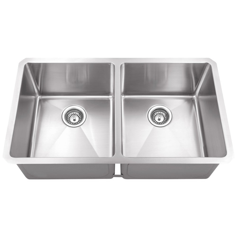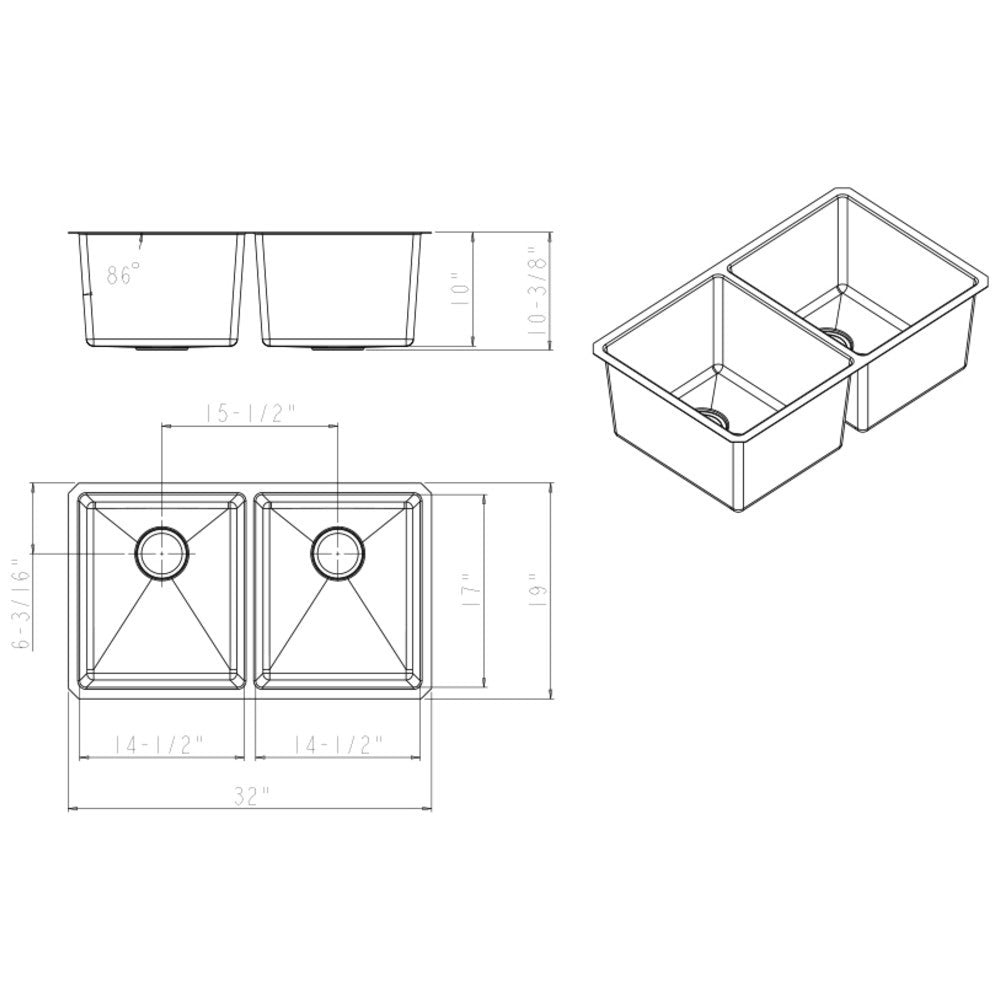32" L x 19" W x 10" D Undermount 16 Gauge Handmade Stainless Steel 50/50 Double Bowl Sink