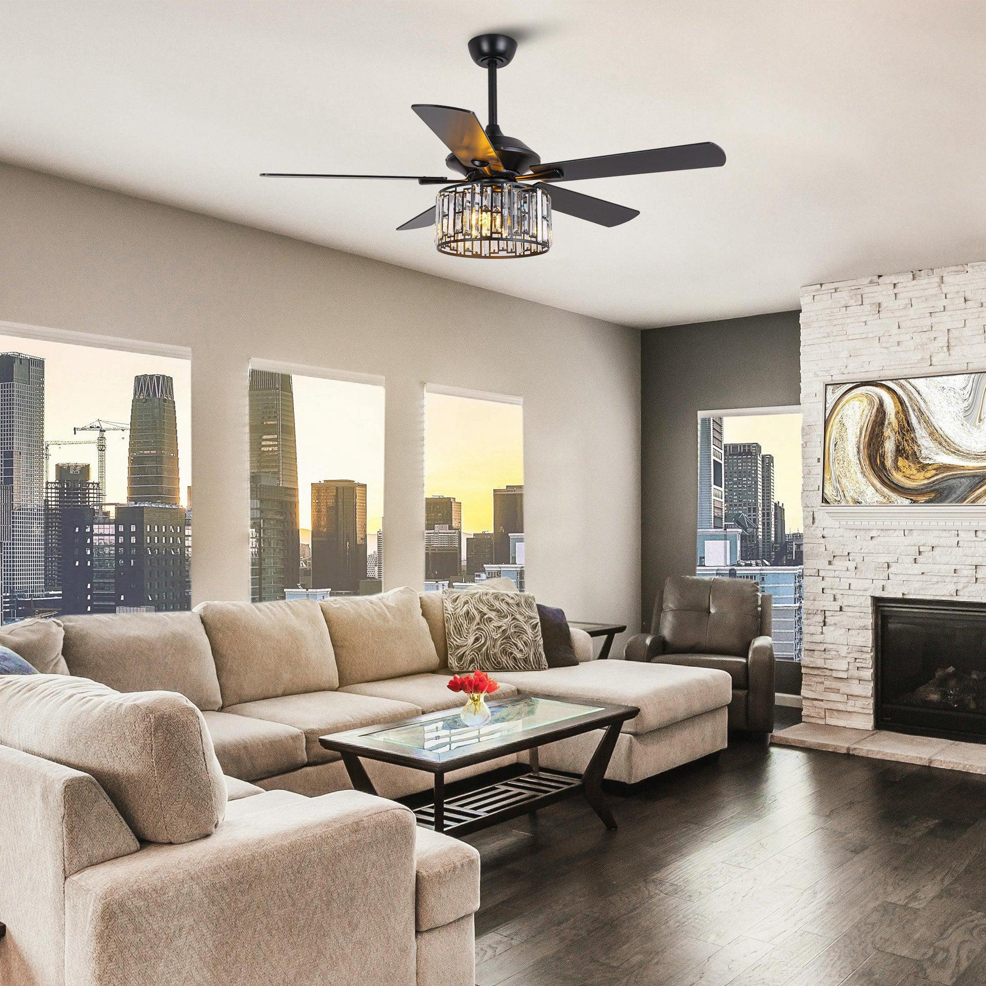 52" Dicken Modern Downrod Mount Reversible Crystal Ceiling Fan With Lighting