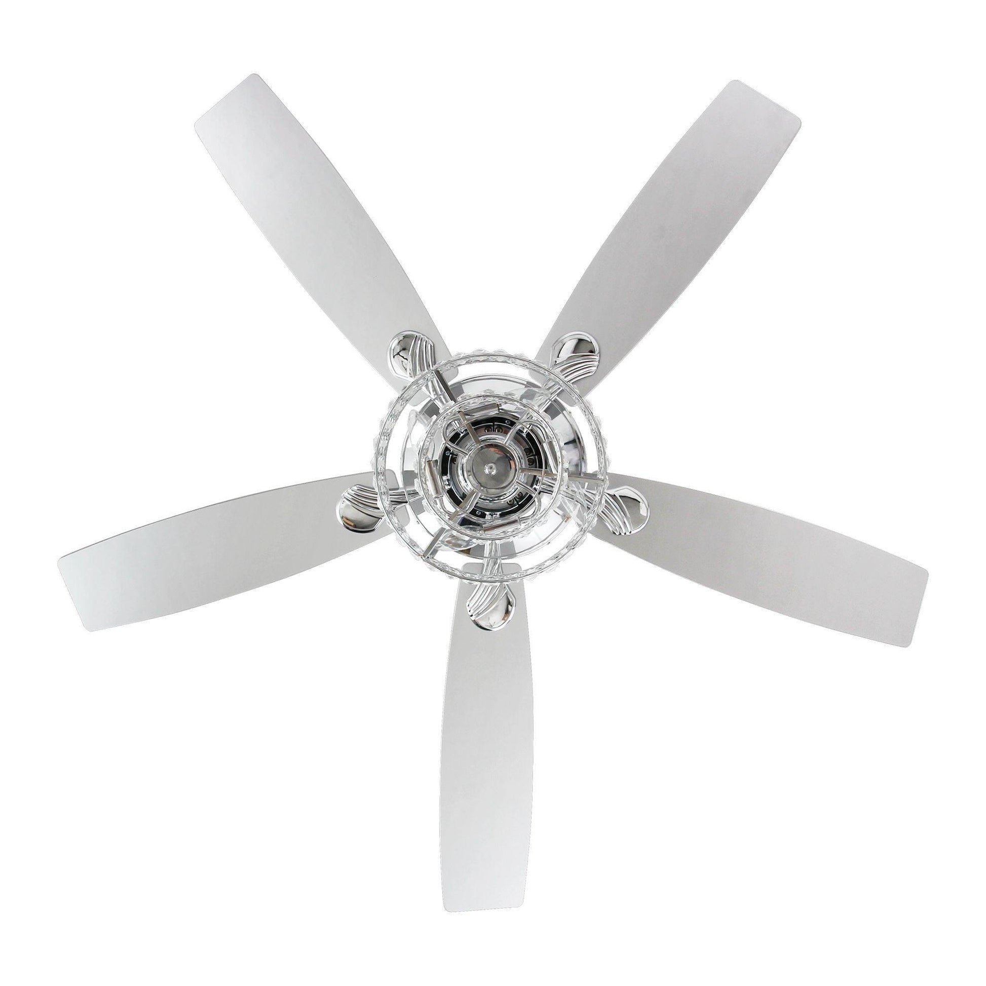 52" Nowthen Modern Crystal Chandelier Ceiling Fan With Led Light And Remote Control 5 Blades Chrome