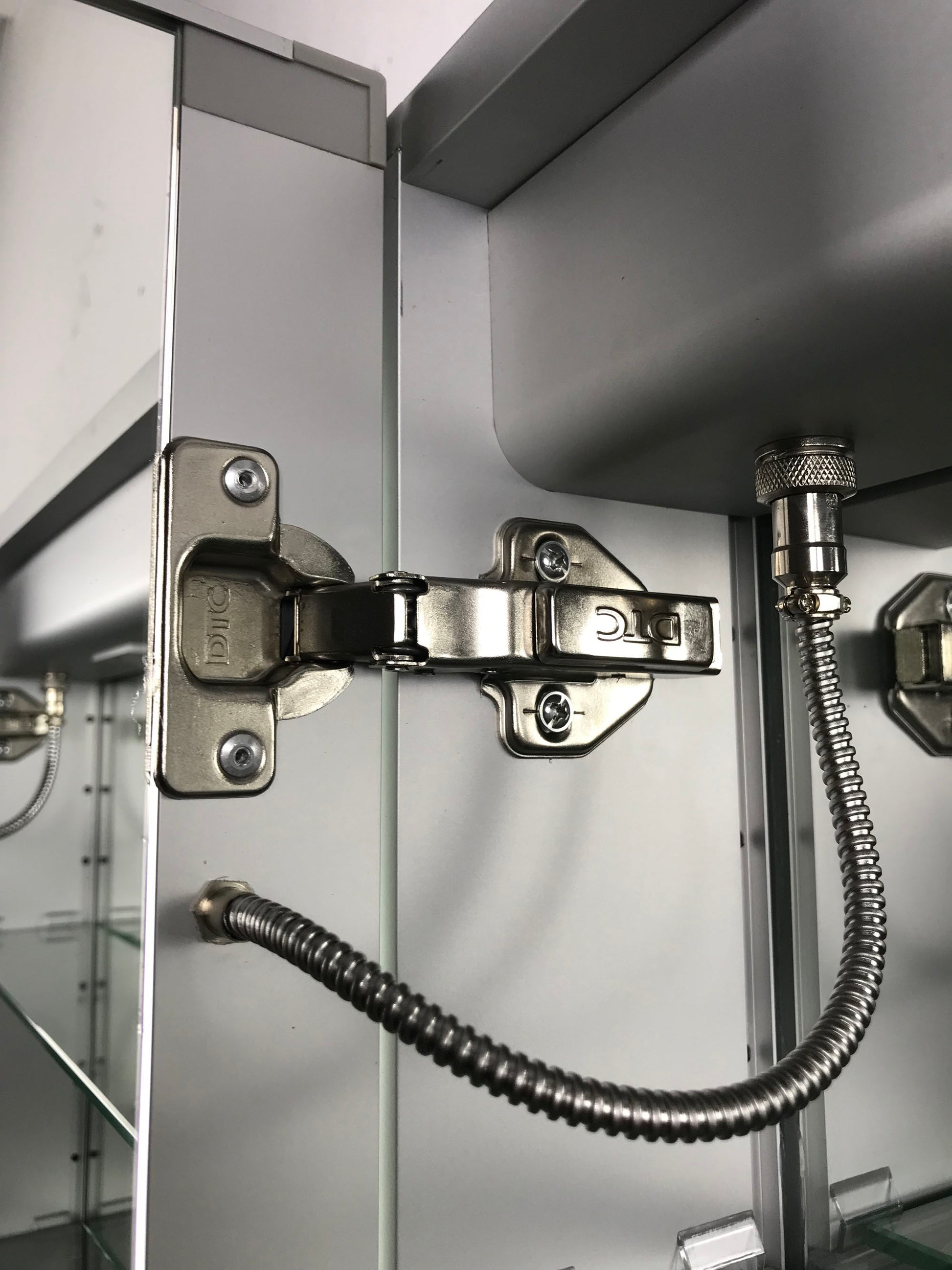 - Triple swinging door with mirror on both sides. Soft self closing door hinges by the top quality DTC brand.