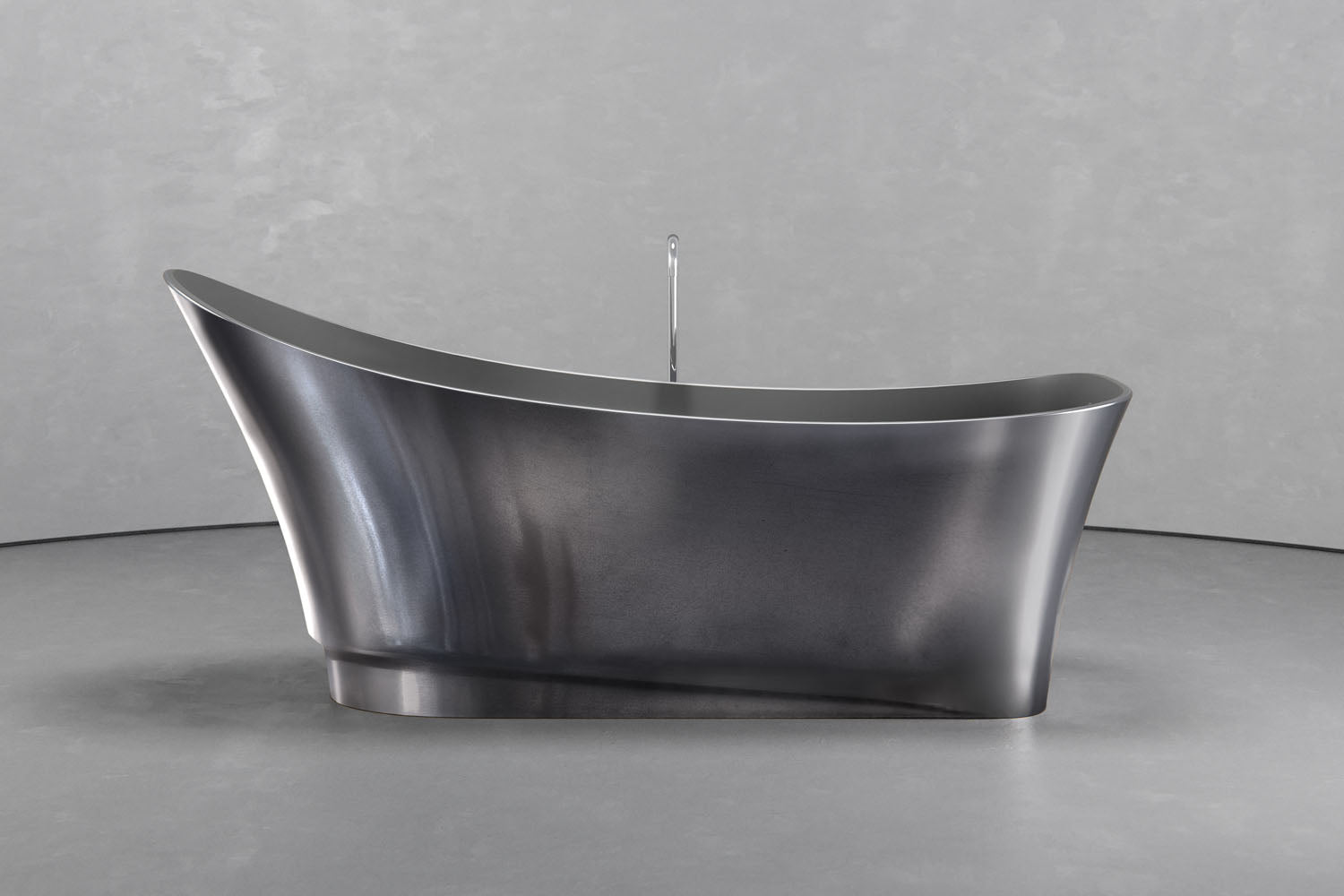 Elevated by a lateral sash cut inward at its base, the shape of a ship’s prow blooms, a nod to exploration and conquest of the self. Taller than it is wide (800mm x 750mm), this sublime vessel supports a fully upright reclining posture or any variety of other orientations. Both sides sport sweeping edges that gently open outwards, creating an abundant, sensuous presence whether empty or full.