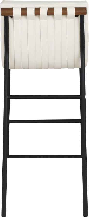 Whether at the home bar or the kitchen counter, this Burke olive vegan leather bar stool keeps guests comfortable while noshing on pancakes or sipping frosty beverages. Upholstered in soft olive vegan leather with olive vegan leather straps, this handsome bar stool makes guests want to stay till closing time. This bar-height stool has a matte black metal frame for sturdy support and a walnut wood veneer metal dowel for an added touch of stylishness. The vegan leather seat is easy to clean and maintain, so the stool keeps its beautiful look longer.