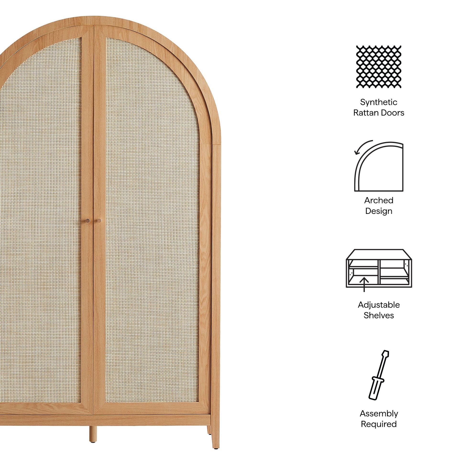 Calista 79" Tall Wide Rattan Arched Storage Cabinet