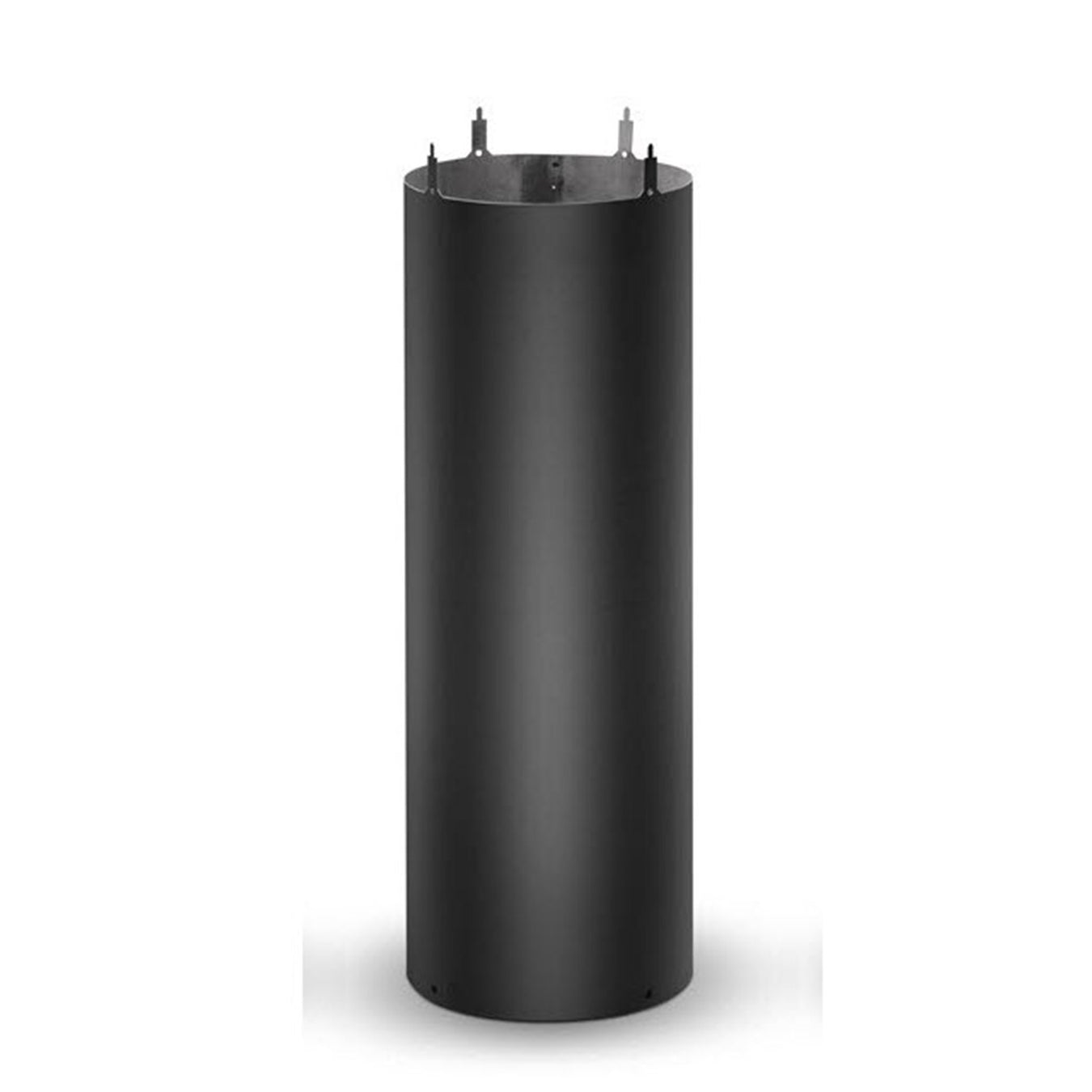 The cosmetic stack extension measures 23" long by 8.5" in diameter, and is designed to cover the Duravent # 6DT-24SS stainless steel chimney pipe.