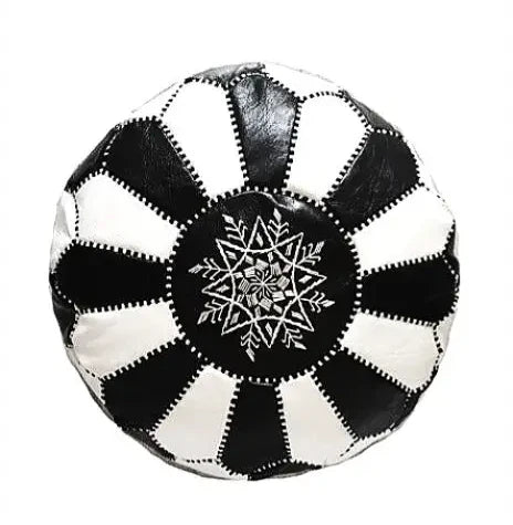 Dual Color Moroccan Leather Ottoman - Traditional Design - Black and White