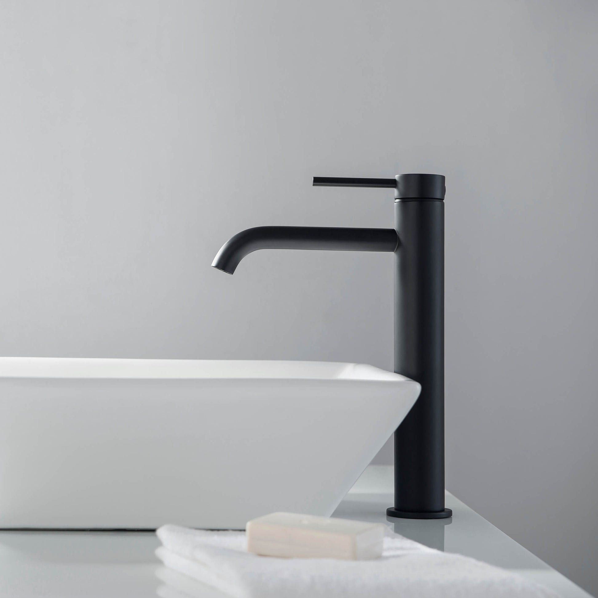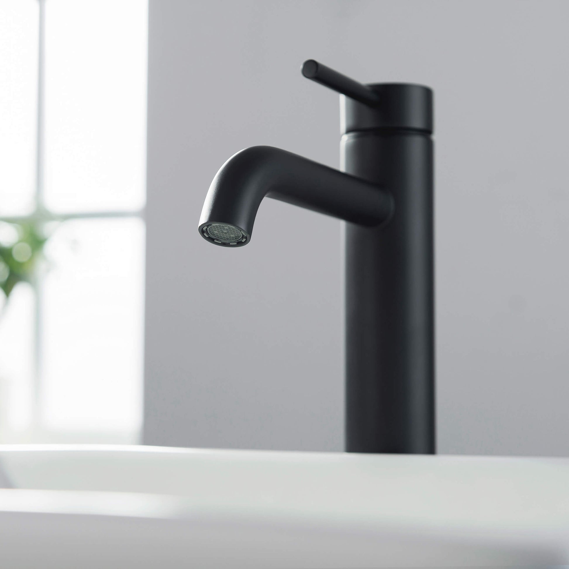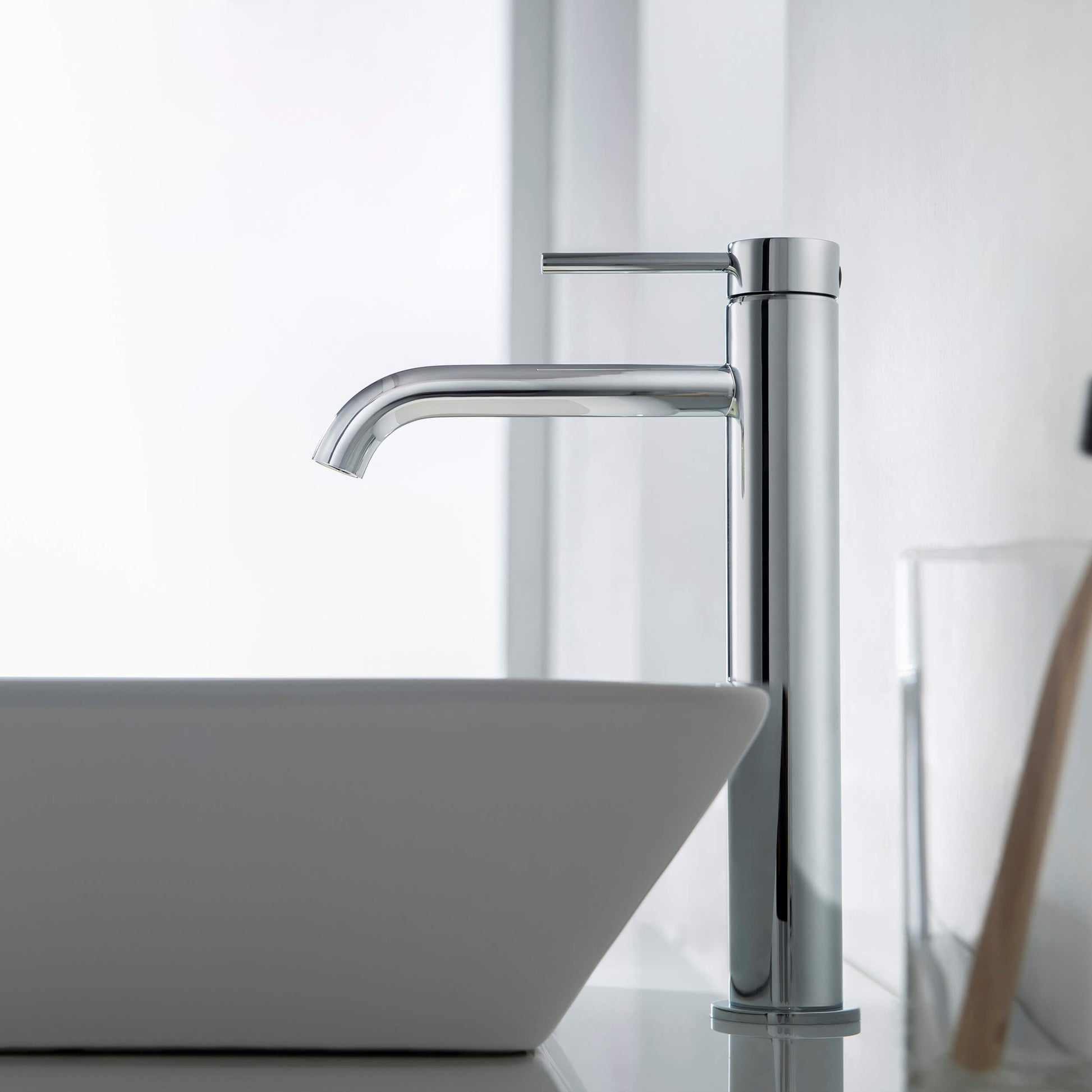Simple lines and contemporary convenience make this beautiful bathroom faucet an ideal choice for your home. The faucet is crafted from solid brass for resistance to rust, corrosion, and tarnishing, and features a single handle over a high, curved spout that offers plenty of room below for handwashing. The ergonomic handle makes it easy to control the temperature and water flow.