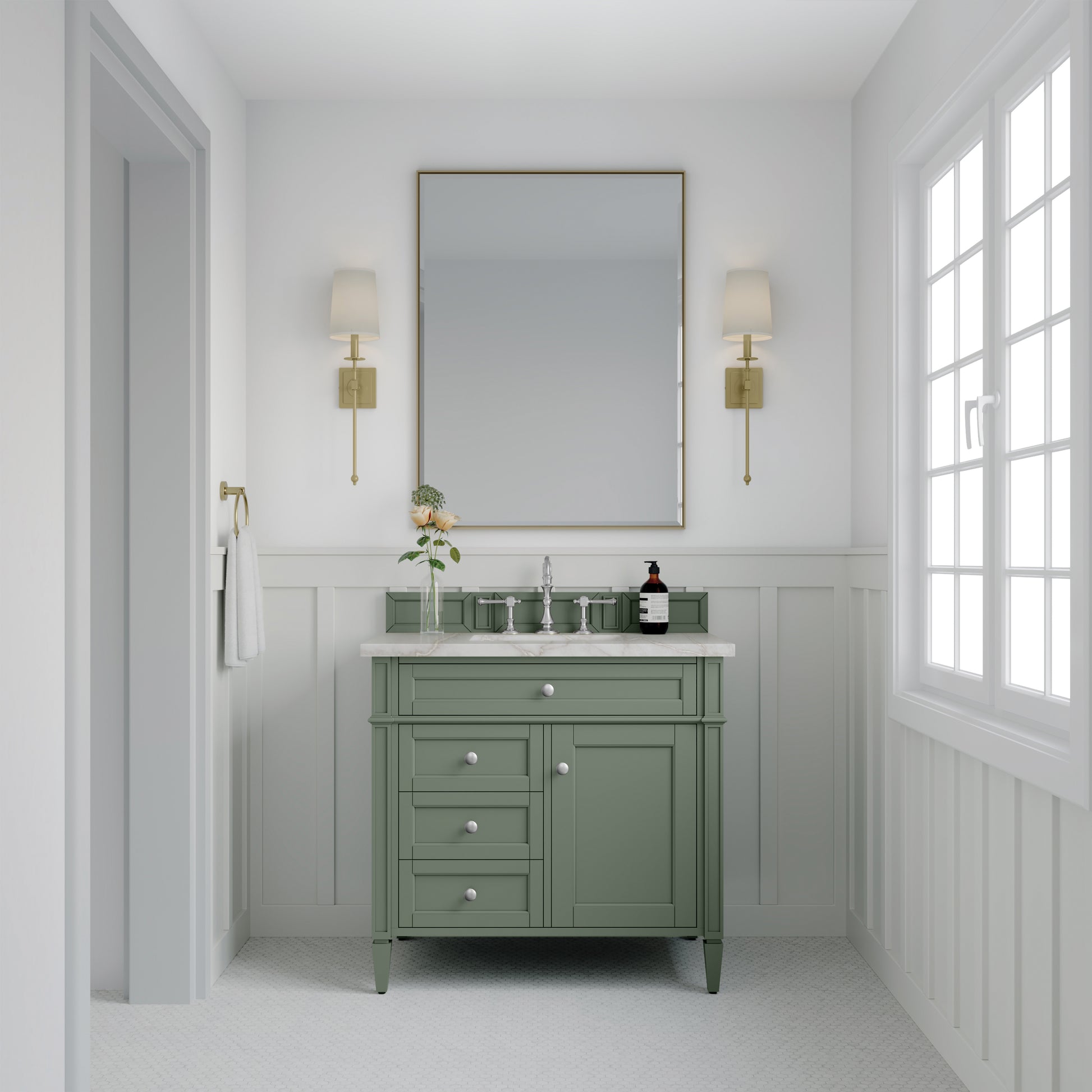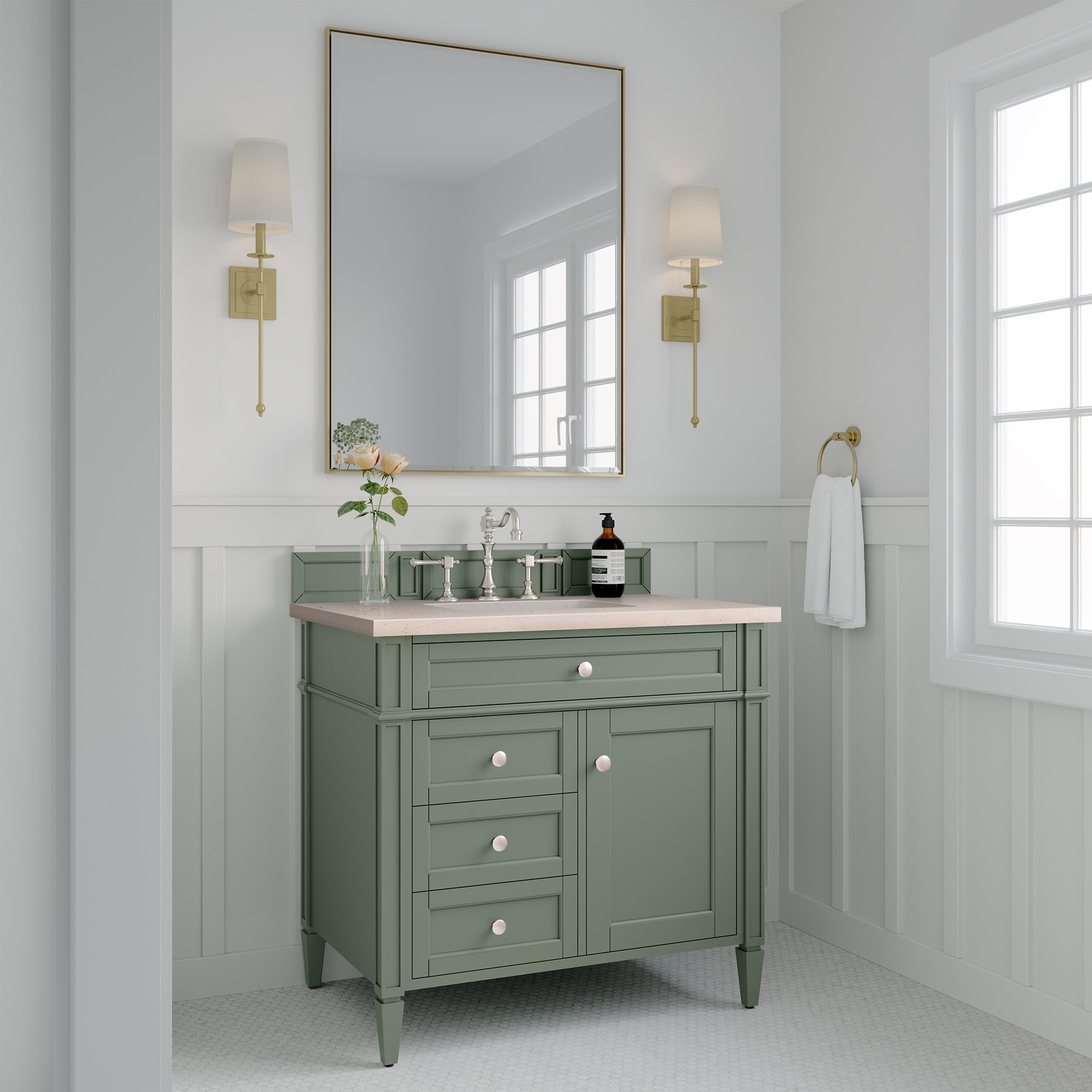 James Martin Brittany 36" Single Vanity in Smokey Celadon with 3cm Countertop