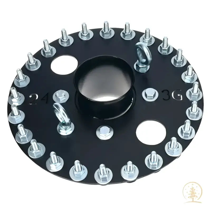 - (1) 12" Mega Tree base plate with 2- 5/16" eye bolts for tying off the hoist ropes