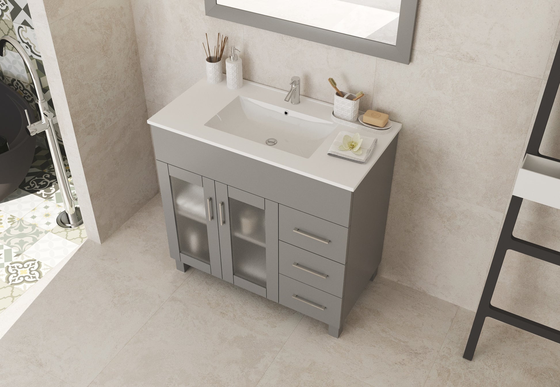 Nova 36" Bathroom Vanity with White Ceramic Basin Countertop