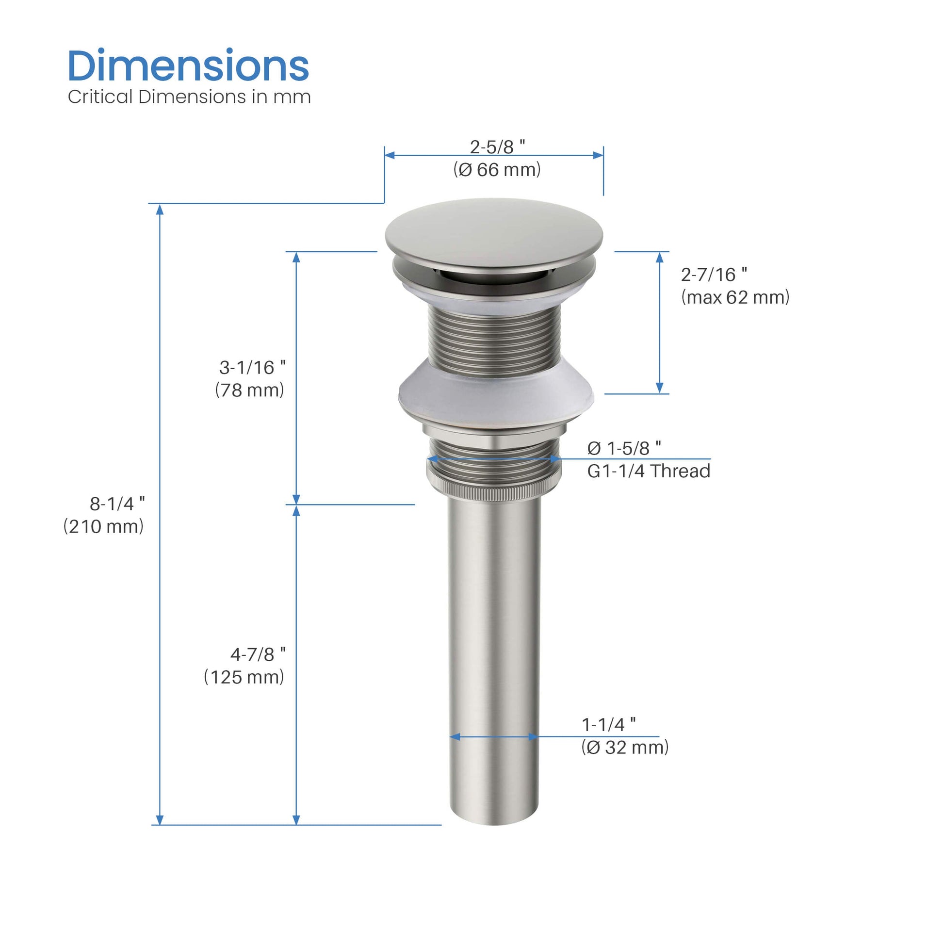 Complete your faucet installation with the Kibi Vessel Pop Up Bathroom Sink Drain without Overflow. This pop-up drain features a brass tailpiece and a 1-1/4" connection.