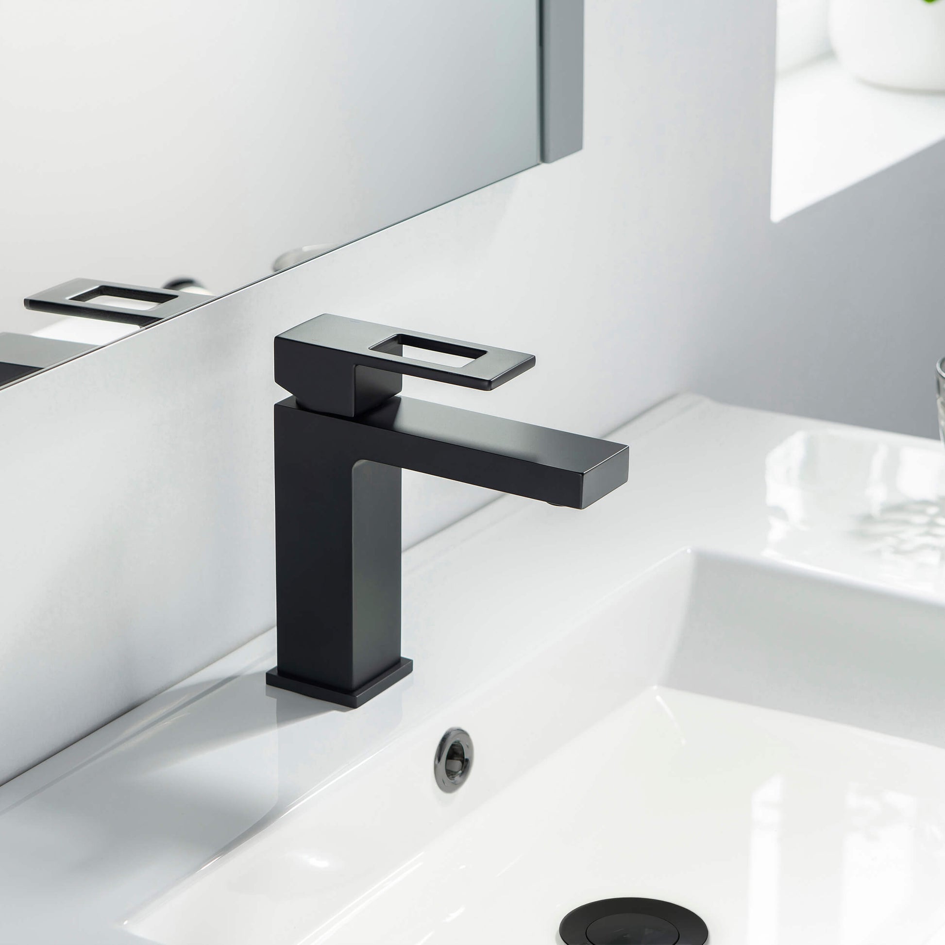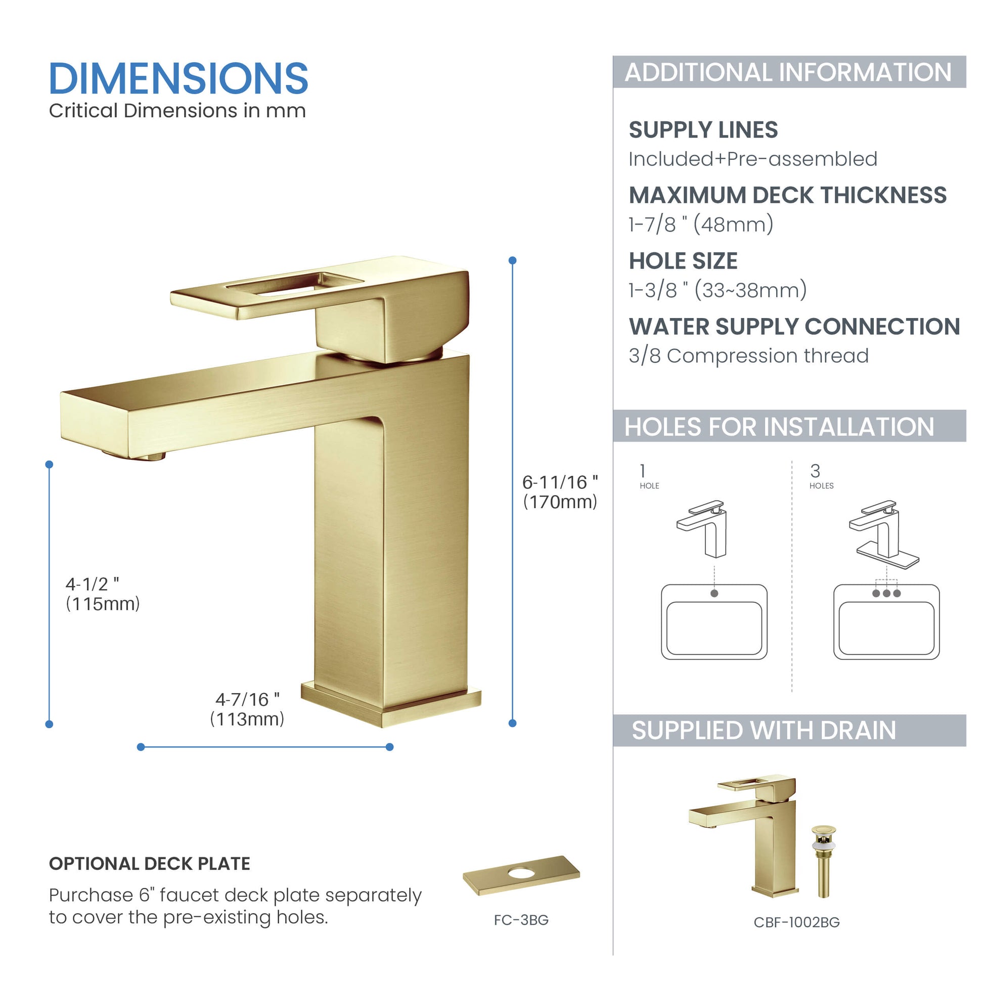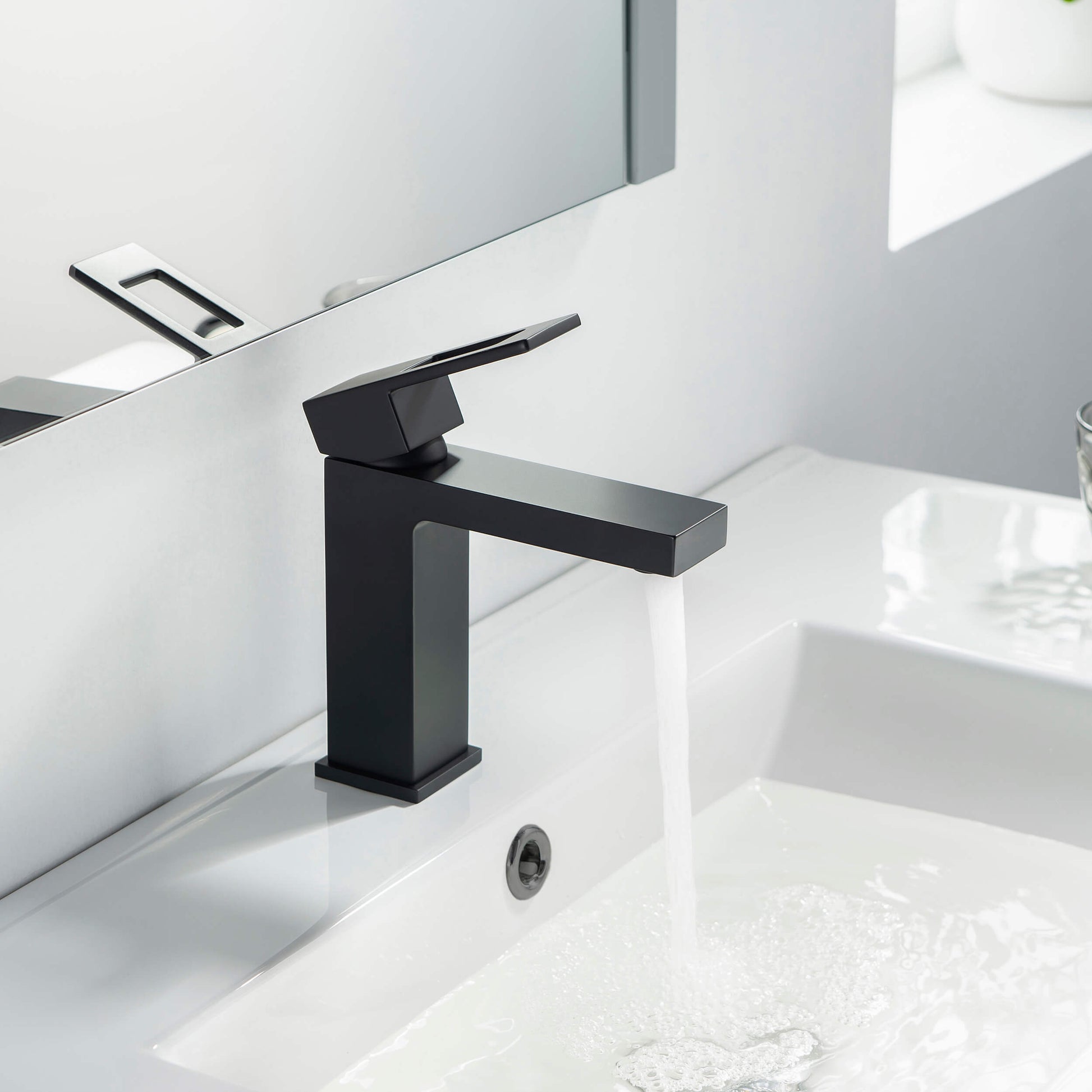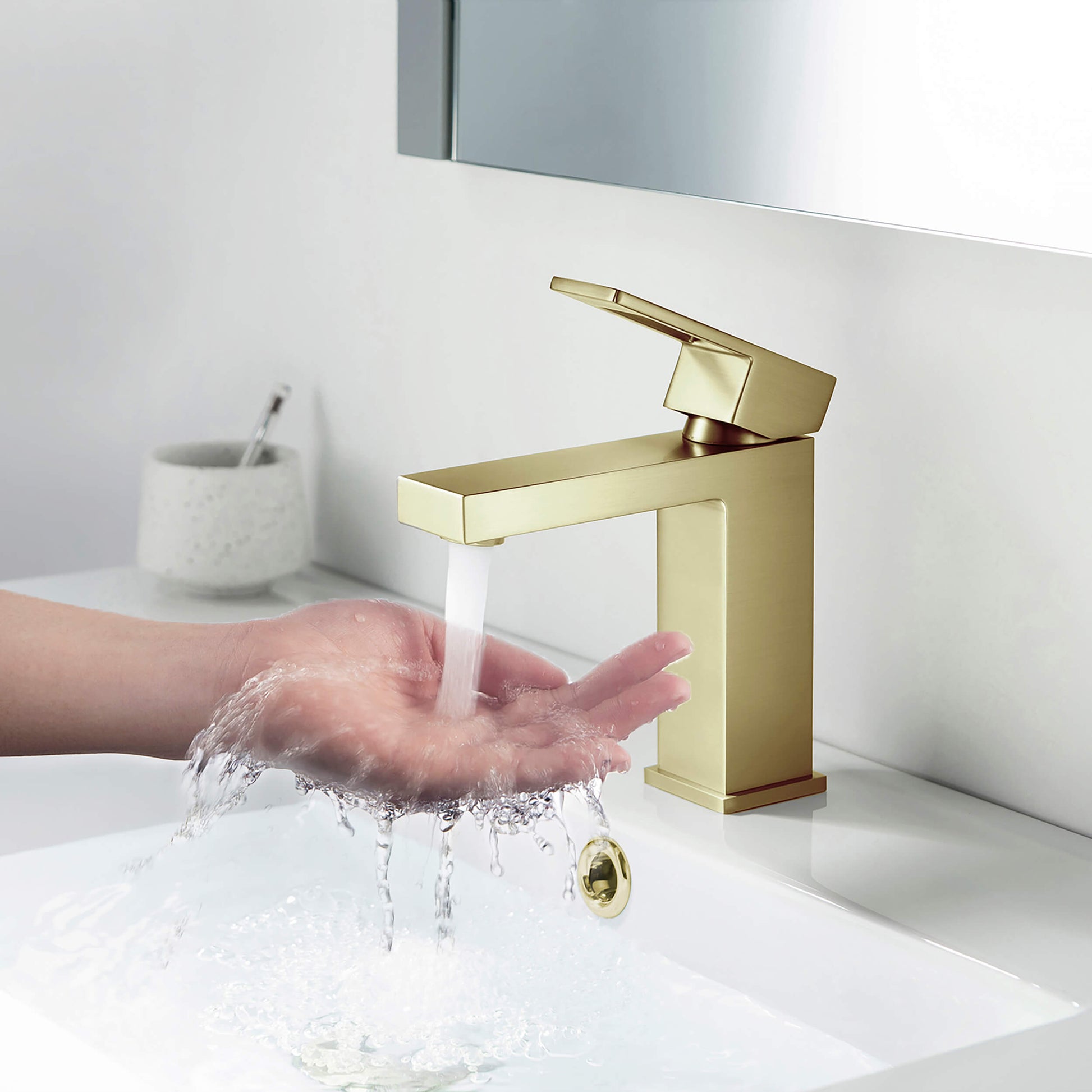 Infuse a modern pop of pizzazz to your bathroom sink, with the help of this gorgeous, sleek, contemporary single-handle solid brass bathroom vanity sink faucet, complete with an angular/geometric silhouette and your choice of several gorgeous finishes.