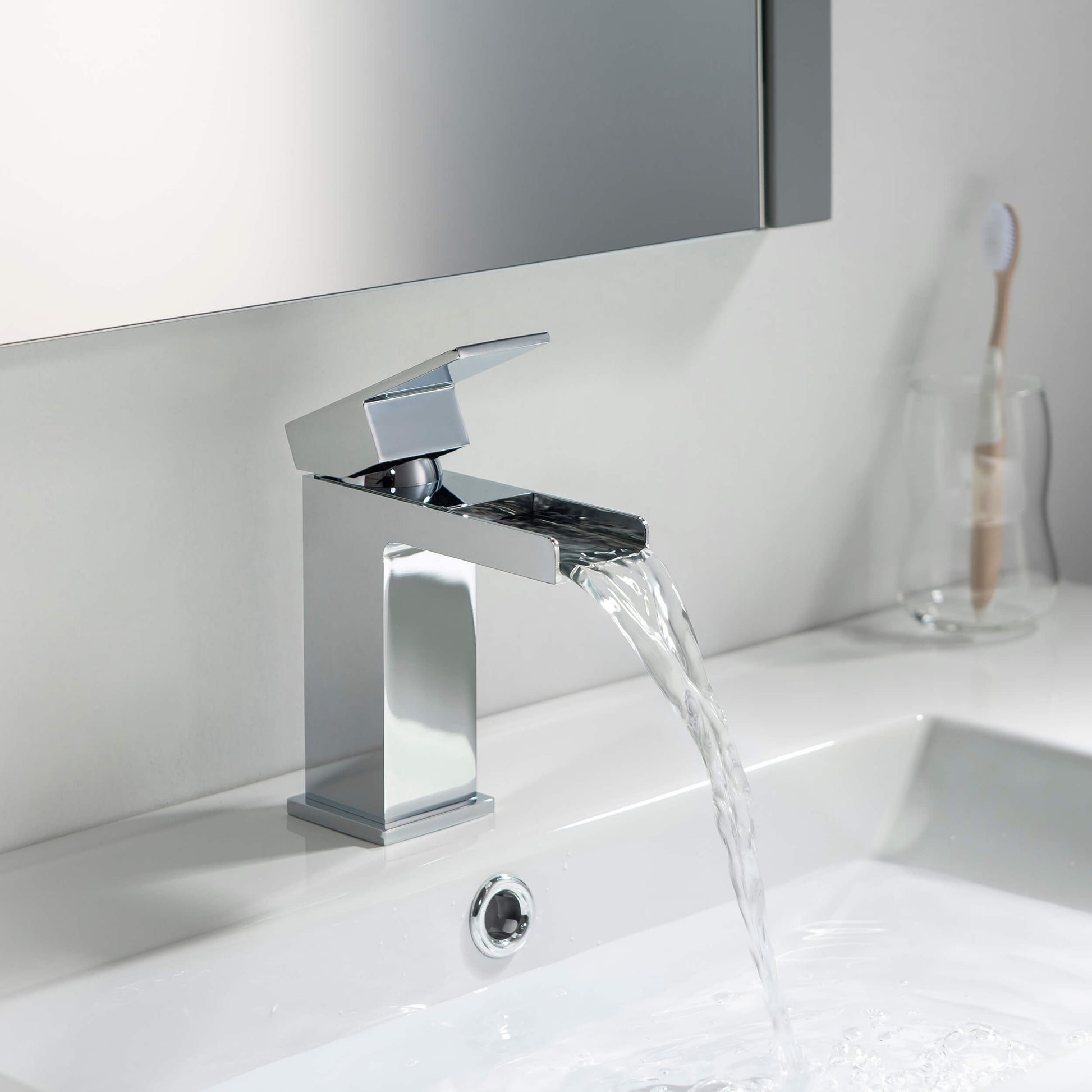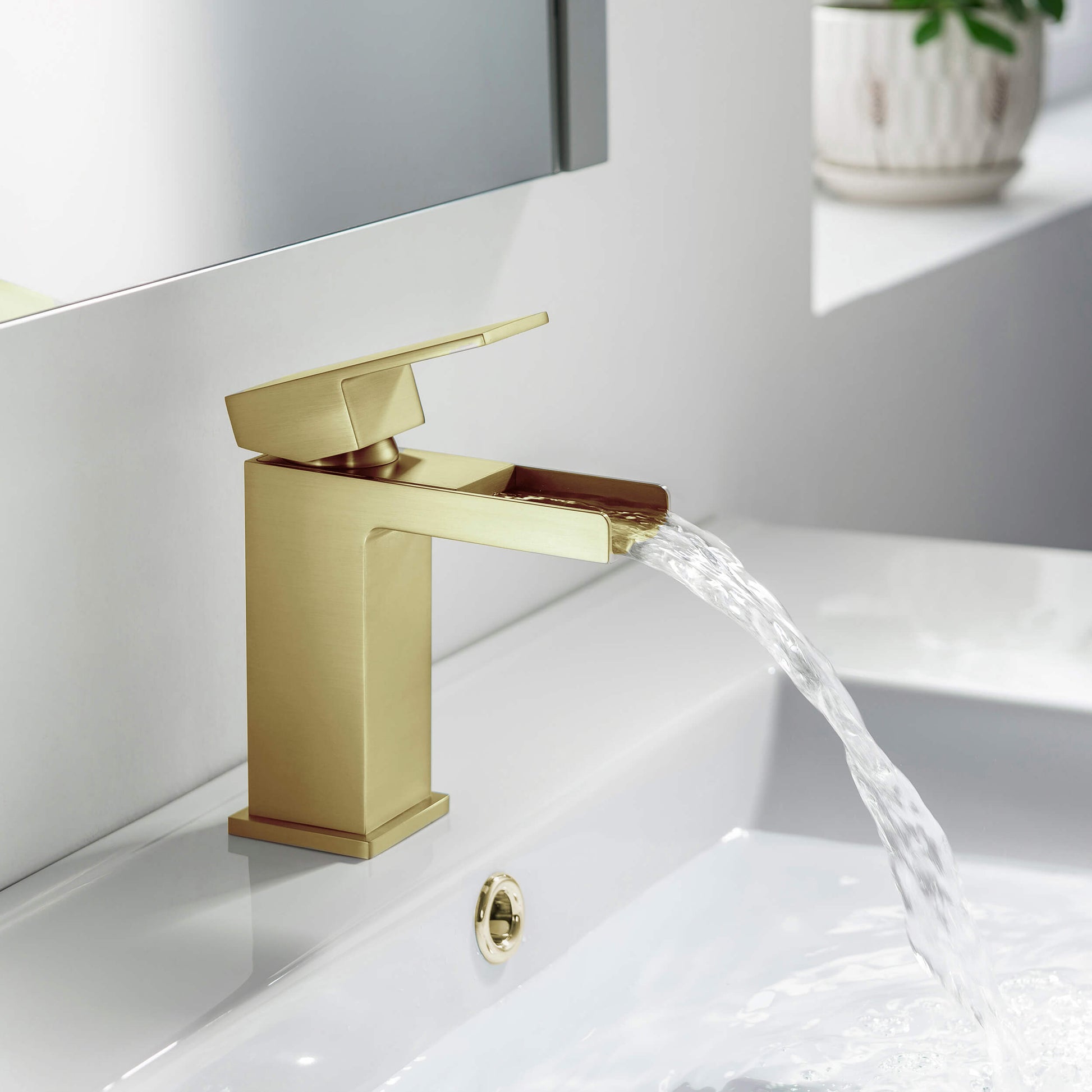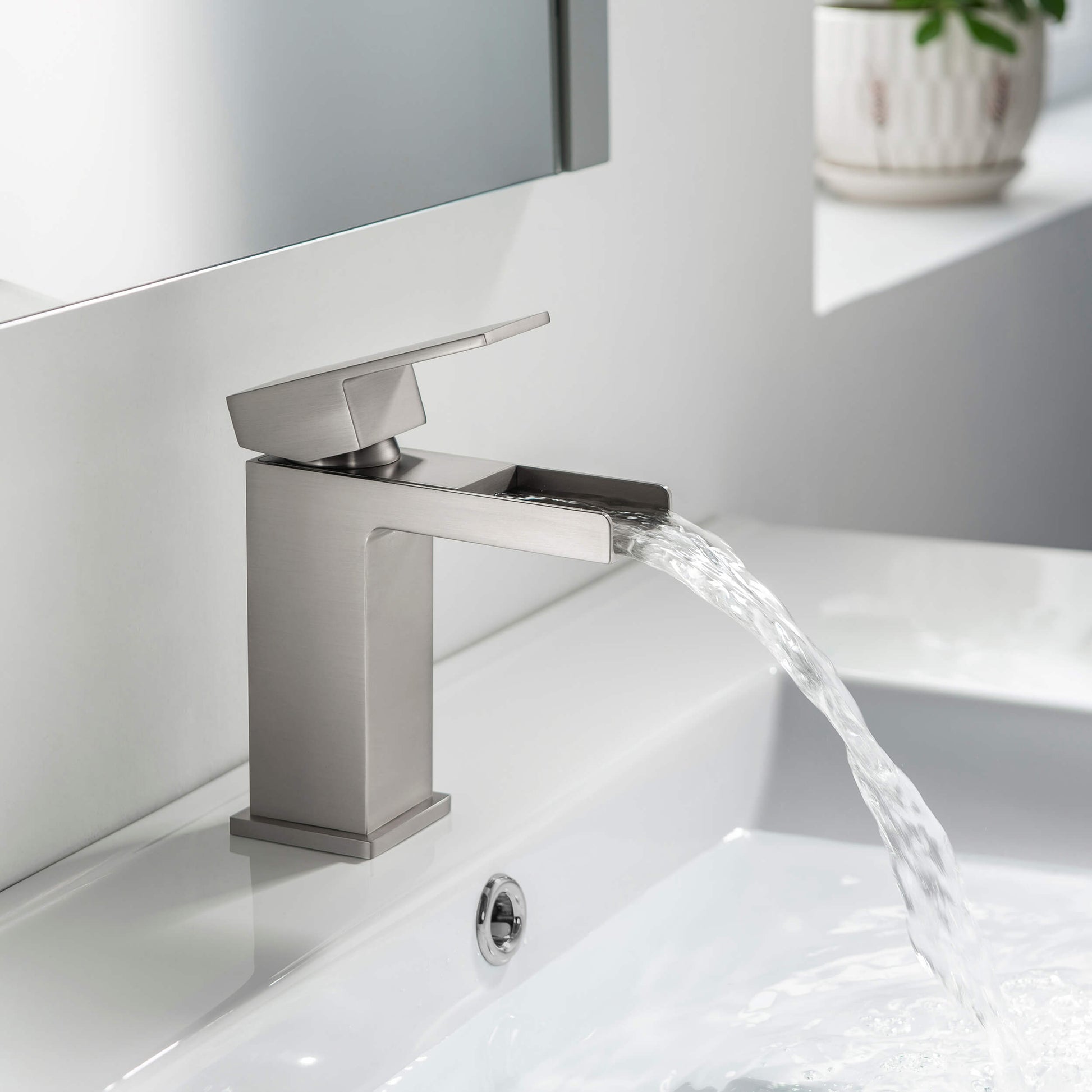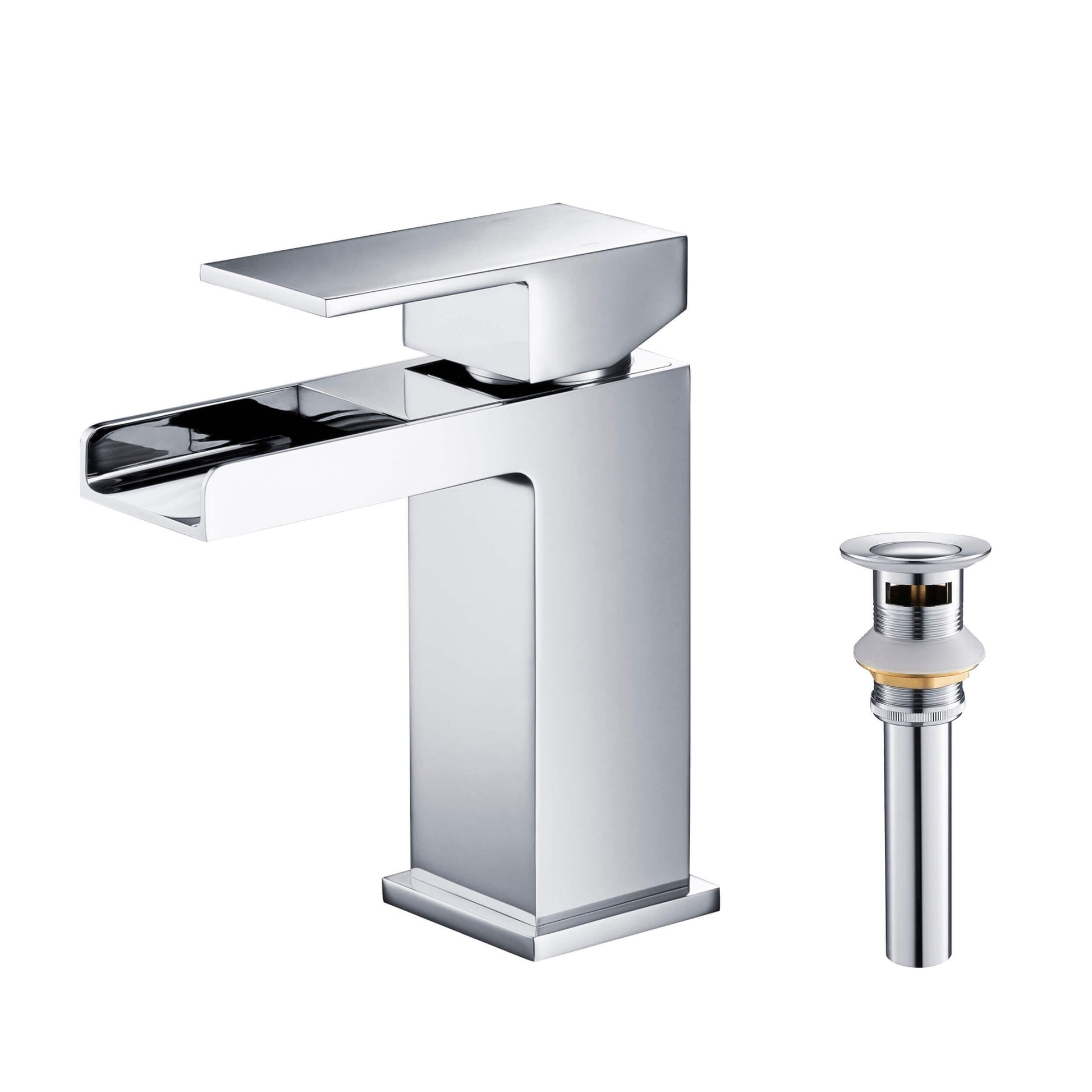 Quadra Waterfall Single Handle Bathroom Vanity Sink Faucet with Pop Up Drain