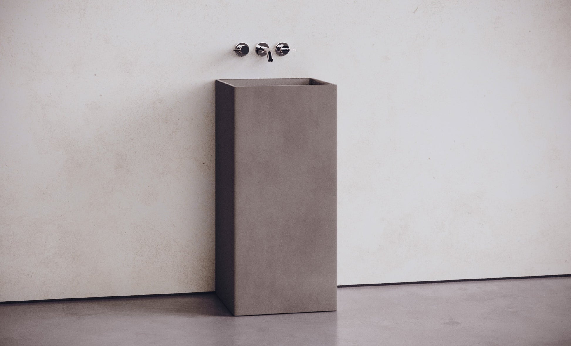 Can a sink inspire a feeling of quiet reverence? Find out as you approach this tall, stately altar whose offering is a deep rectilinear sink and the renewing gift of water. Gently rounded corners, long surfaces and a sheared-flat top achieve elegance through pure simplicity. The effect is reserved, refined, rarified — a true elevation in every sense of the word.