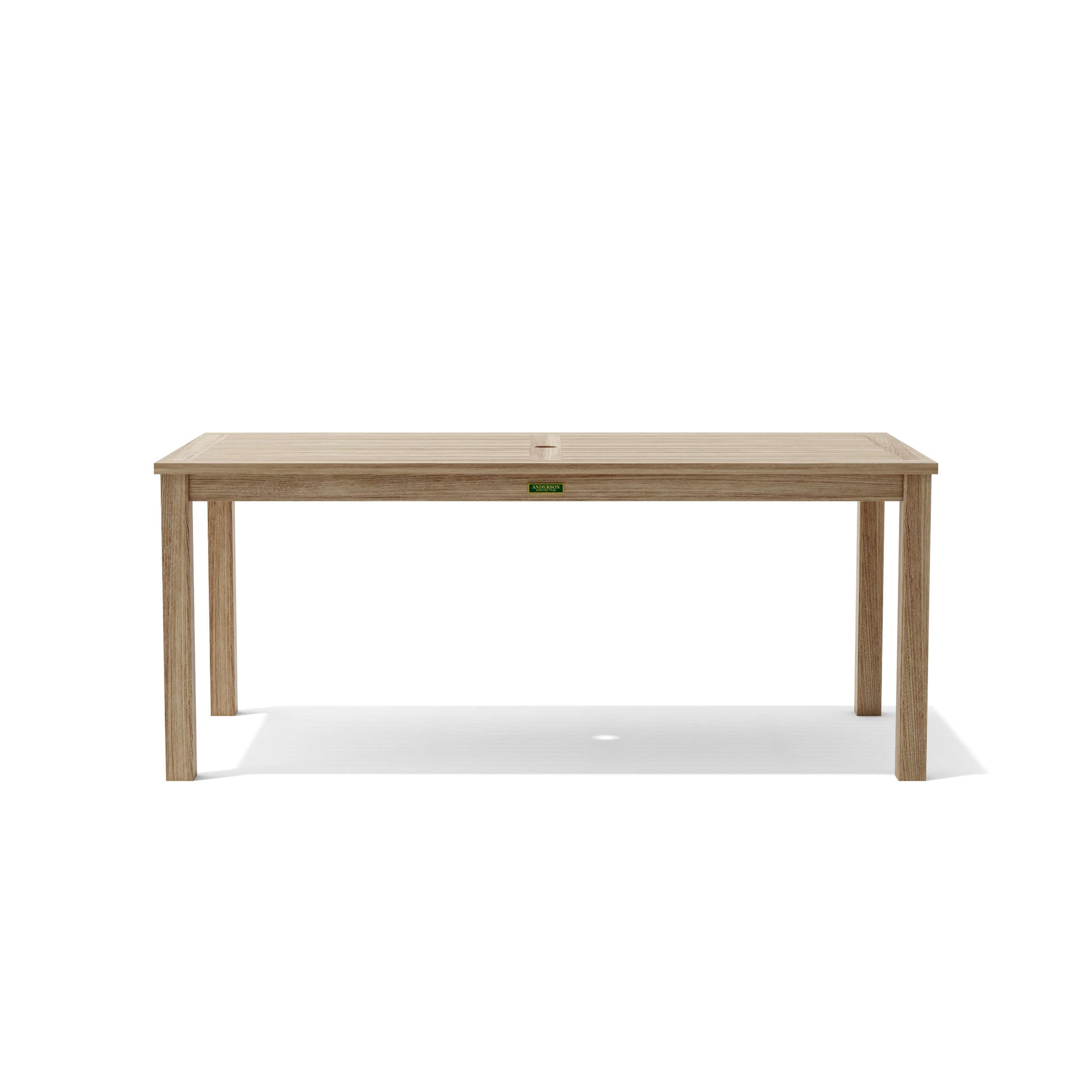 Elevate your outdoor dining experience with this stunning 7-Piece Rectangular Dining Set. Fashioned from premium Grade "A" teak, the set showcases the wood's natural beauty and inherent strength. The 65-inch rectangular table, featuring an umbrella hole and plug, provides ample space for dining, while six matching chairs offer comfortable support. Maintain the teak's golden hue with occasional cleaning or allow it to weather naturally to a distinguished silver-grey. This set is a testament to enduring craftsmanship and timeless design. Quality built for generations.