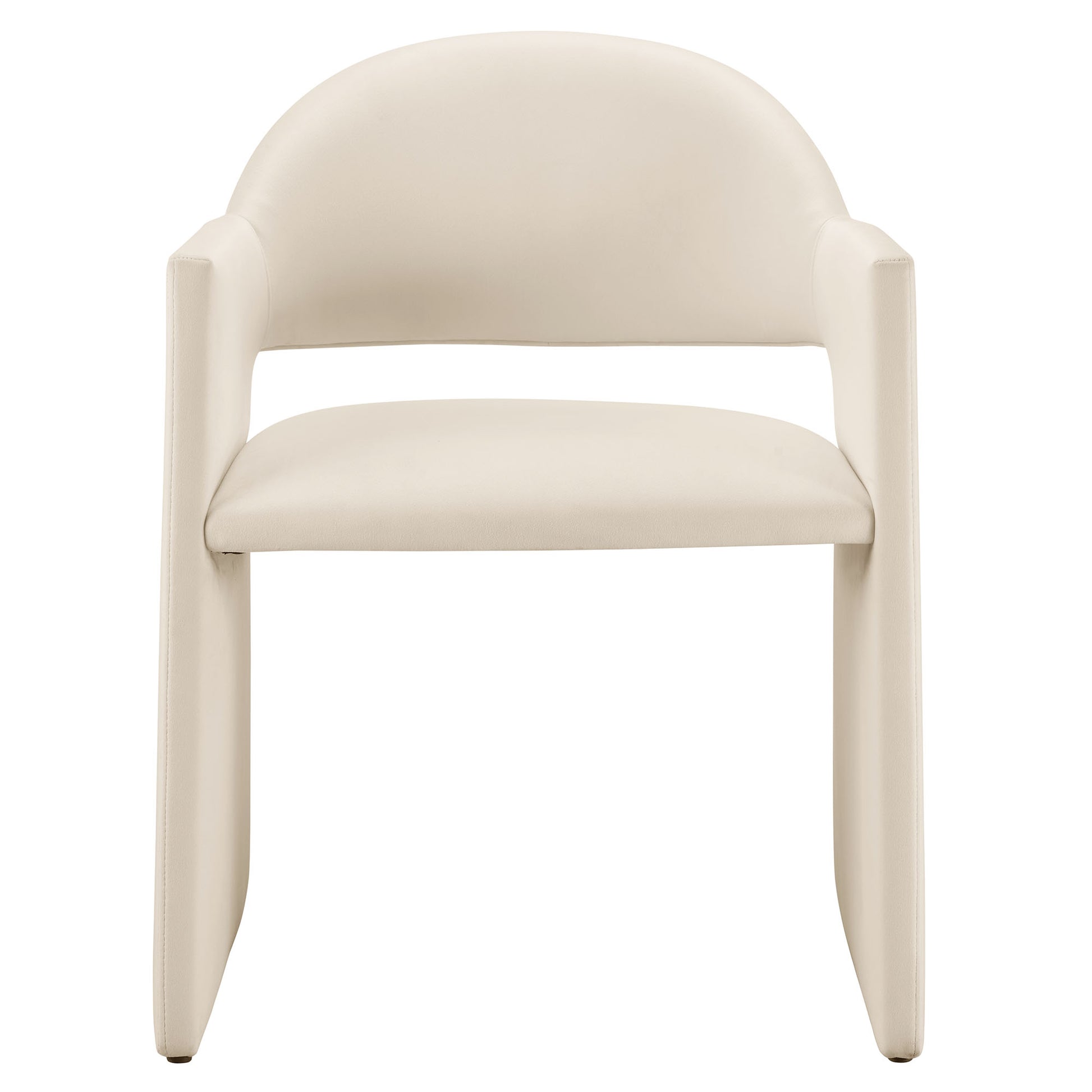 The Talia Performance Velvet Dining Chair is a stunning example of modern design, blending clean lines with luxurious comfort. Whether as a stylish living room accent chair, a statement piece in the dining area, or even a chic office accent chair, the Talia Barrel Back Dining Chair offers both timeless style and versatility. Built on a sturdy bentwood frame, this dining chair with arms is fully upholstered in soft, stain-resistant performance velvet for a premium feel. Its elegantly curved backrest flows seamlessly into wide, angular armrests that extend down to the floor, creating a sculptural look that's perfect for minimalist and contemporary spaces. The open-back design of this curved dining chair provides a light and airy feel, while the generously padded seat ensures lasting comfort. Completing the design, floor-protecting foot pins are included to prevent scratches, making it easy to move and enjoy without worry. The Talia Velvet Armchair arrives fully assembled, ready to elevate your space. Weight Capacity: 300 lbs.
