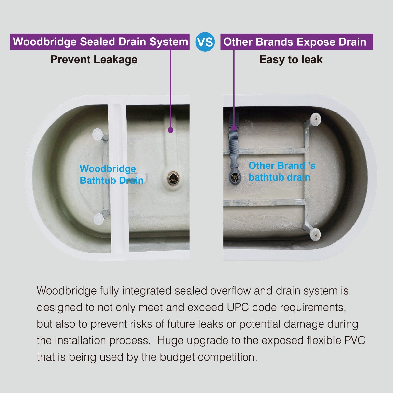 [PREMIUM QUALITY CONSTRUCTION]: WOODBRIDGE bathtub is made out of 100% high gloss white LUCITE acrylic and reinforced with ASHLAND resin & fiberglass . All of these are top quality material which are rarely used by others due to a relatively high cost.