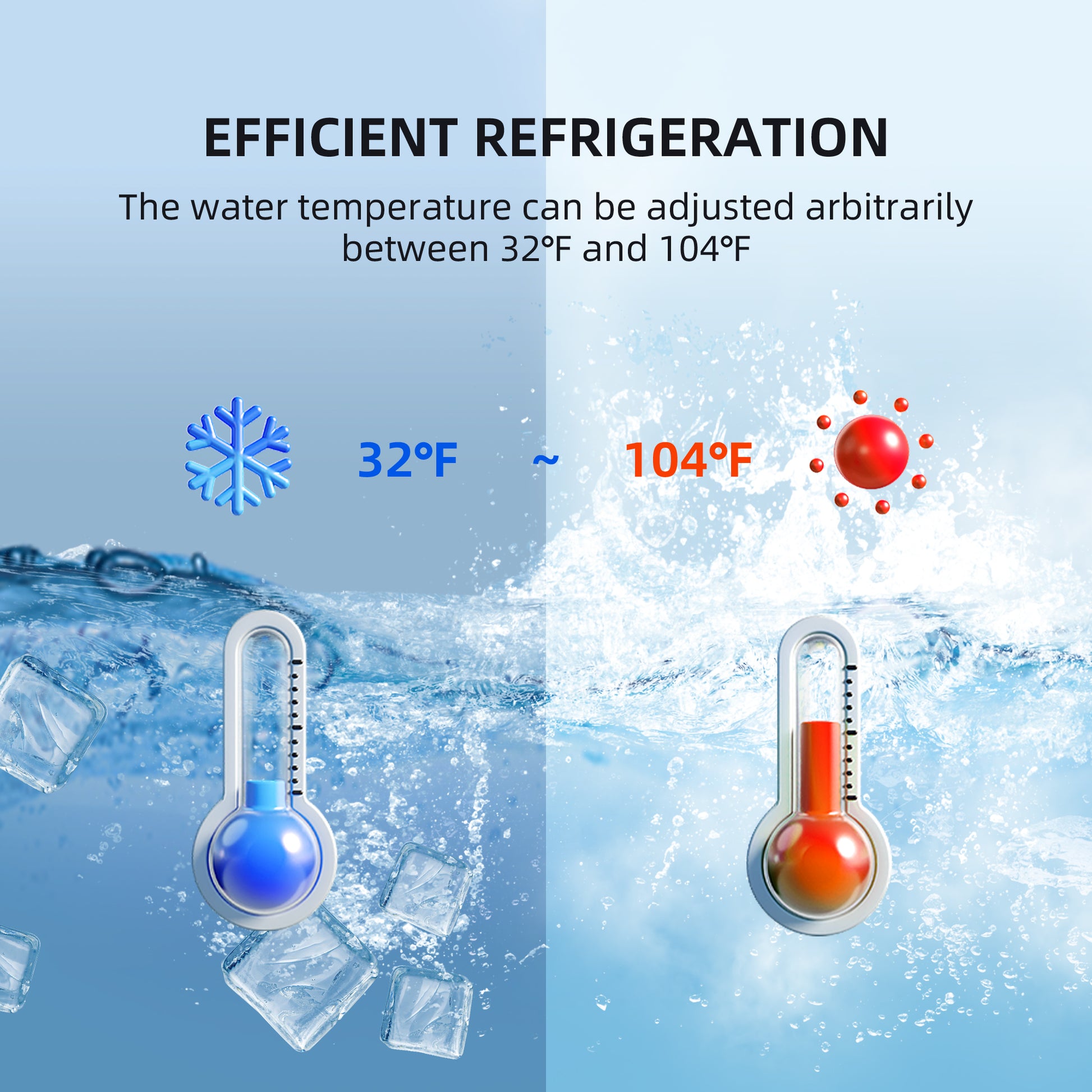 [FILTER CIRCULATION SYSTEM]: Replaceable filter cartridge inside chiller can filter any water debris from water pipe and allows fine water to constantly circulate which helps water quality & makes for an even colder plunge experience.