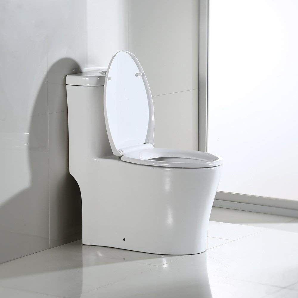 [All-in-One Package Design]: Includes toilet, pre-installed soft closing toilet seat, high quality wax ring, floor bolts, and installation instruction, Easy installation Design: Include special hand wrench tool to easily tighten the bolts in narrow spaces