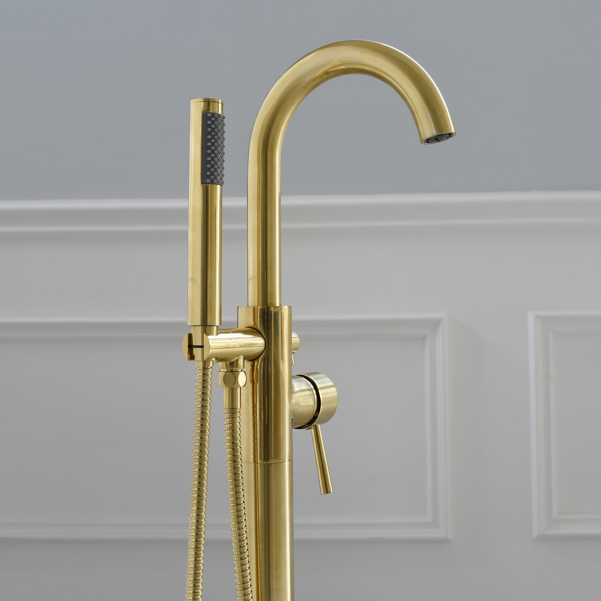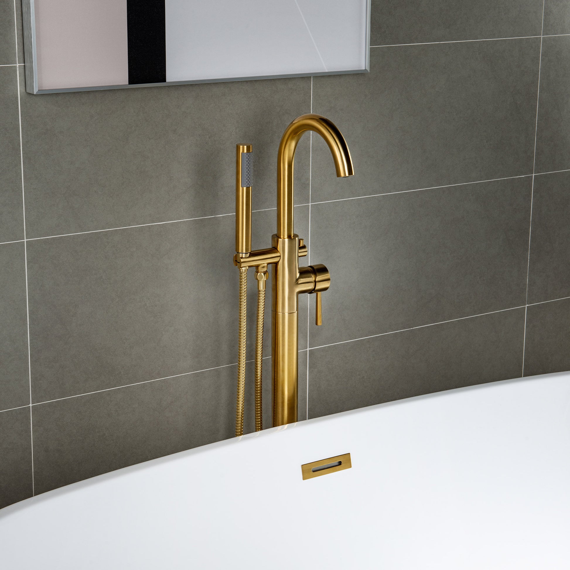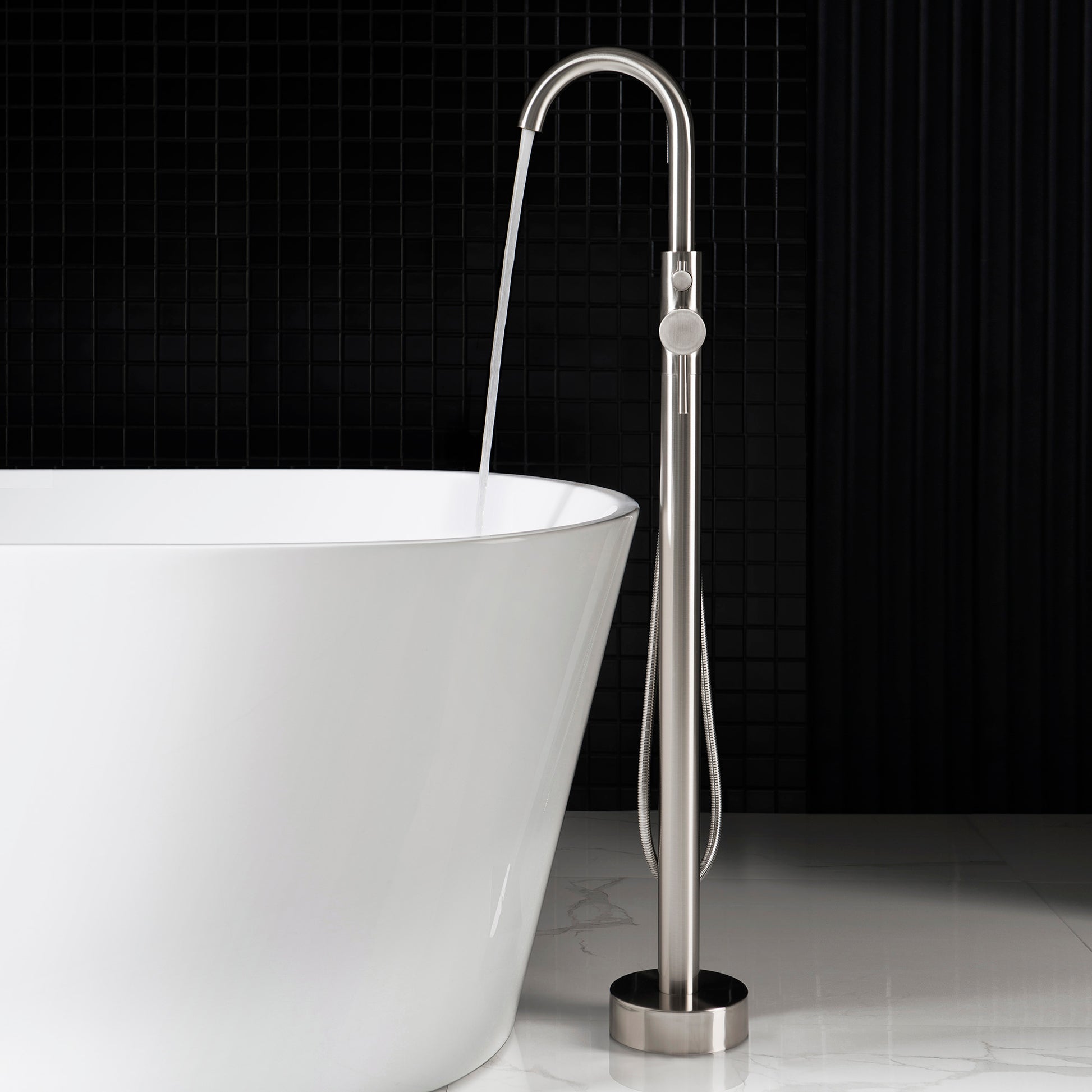 WOODBRIDGE F0001BNRD Contemporary Single Handle Floor Mount Freestanding Tub Filler Faucet with Hand shower
