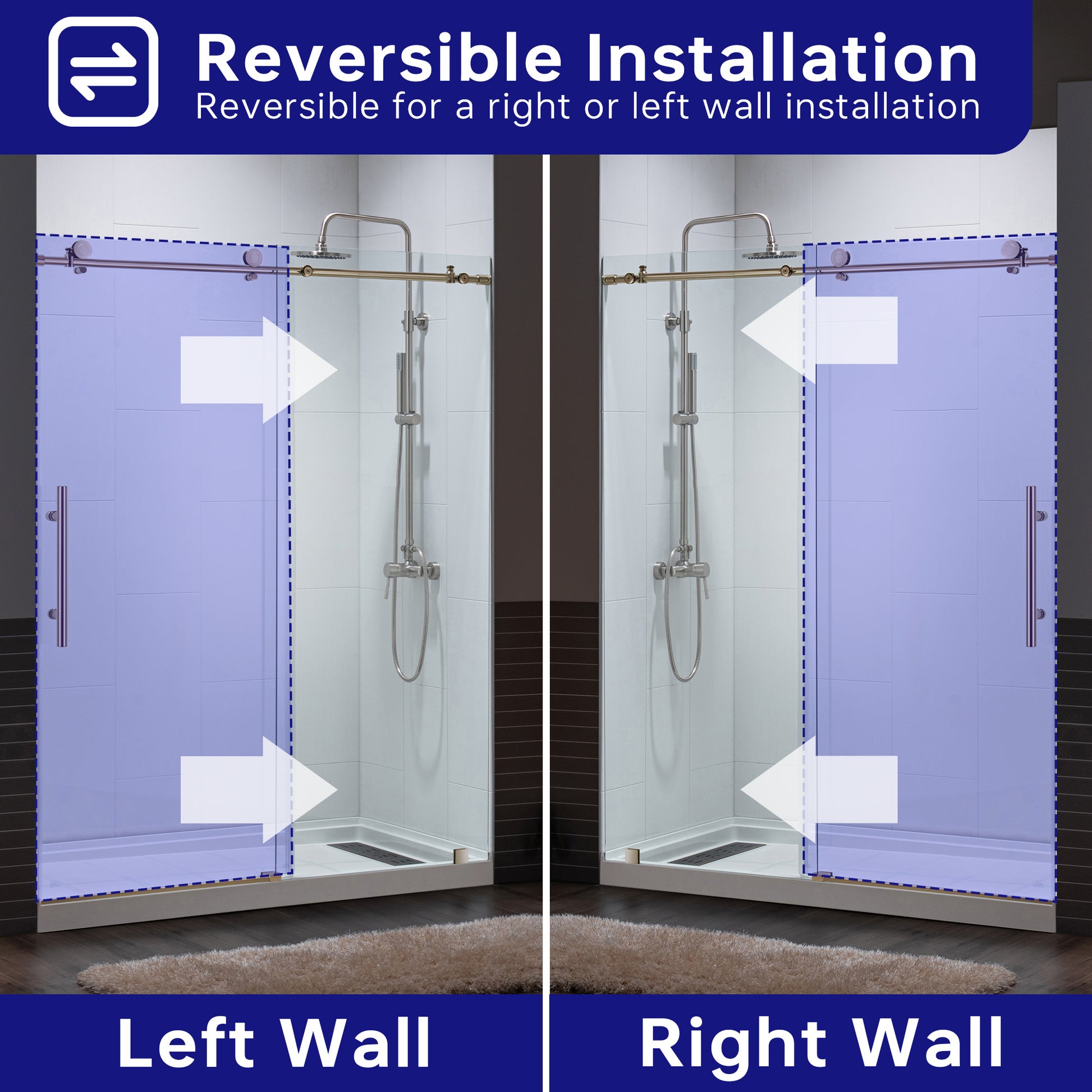 - Frameless & Reversible: Clean, modern look with left or right entry. (Requires plumb walls.)
